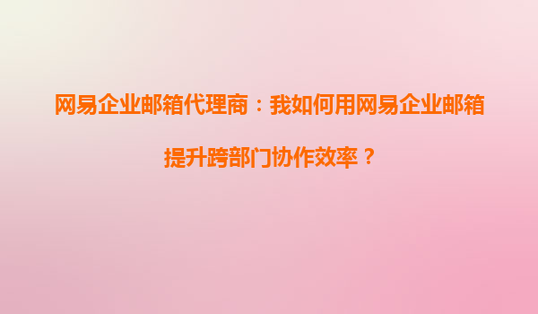 2025-10-11網(wǎng)易企業(yè)郵箱代理商:我如何用網(wǎng)易企業(yè)郵箱提升跨部門協(xié)作效率? 一、跨部門協(xié)作的痛點(diǎn)與網(wǎng)易企業(yè)郵箱的解決方案 在企業(yè)管理中,跨部門協(xié)作常面臨溝通不暢、信息孤島、流程繁瑣等問題。網(wǎng)易企業(yè)郵箱作為專業(yè)的...