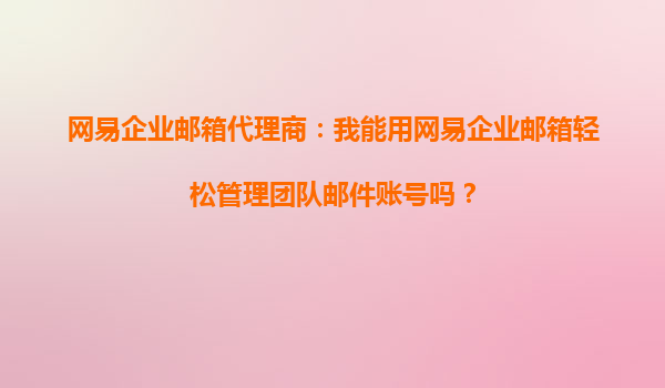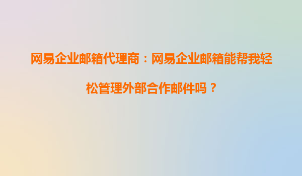 2025-10-11網(wǎng)易企業(yè)郵箱代理商:我能用網(wǎng)易企業(yè)郵箱輕松管理團(tuán)隊(duì)郵件賬號嗎? 在當(dāng)今快節(jié)奏的商業(yè)環(huán)境中,高效的團(tuán)隊(duì)協(xié)作和溝通是企業(yè)成功的關(guān)鍵因素之一。作為企業(yè)管理者或IT負(fù)責(zé)人,您可能經(jīng)常思考如何更好地...