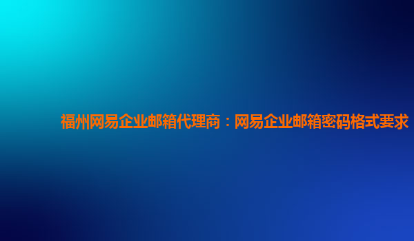 2024-06-12福州網易企業郵箱代理商:網易企業郵箱密碼格式要求 作為福州地區的網易企業郵箱代理商,我們經常收到關于網易企業郵箱密碼格式要求的咨詢。在這里,我們將為大家詳細介紹網易企業郵箱密碼格式要求,并探討網易企業...