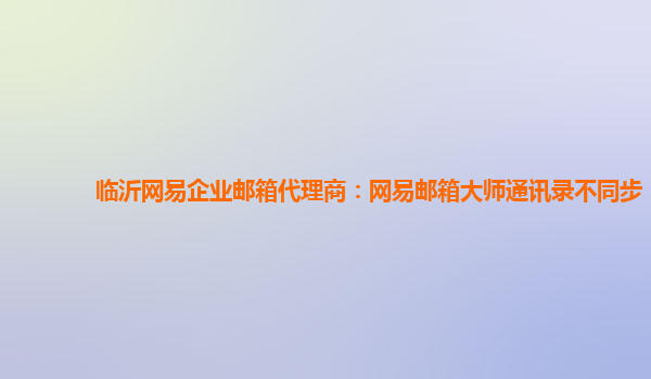 2024-06-12臨沂網易企業郵箱代理商:網易郵箱大師通訊錄不同步 近期,一些用戶反映在使用網易企業郵箱時遇到了通訊錄不同步的問題,這對工作效率造成了一定影響。作為臨沂地區的網易企業郵箱代理商,我們深感抱歉并將盡快解決...