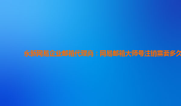 2024-06-12永新網易企業郵箱代理商:網易郵箱大師號注銷需要多久 隨著互聯網的快速發展,網易企業郵箱成為了企業辦公中不可或缺的一部分。作為永新網易企業郵箱代理商,我們深知企業對高效、安全的郵箱系統的需求,而網易企業...