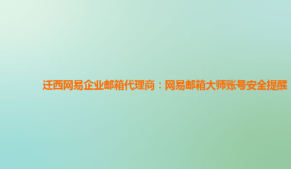 2024-06-12遷西網易企業郵箱代理商:網易郵箱大師賬號安全提醒 作為一家企業,擁有一個穩定、安全的郵箱系統至關重要。而作為遷西網易企業郵箱代理商,我們推薦您使用網易郵箱大師,不僅可以提升工作效率,還能保障賬號安全。 ...
