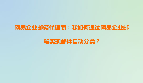 2025-10-05網(wǎng)易企業(yè)郵箱代理商:如何通過(guò)網(wǎng)易企業(yè)郵箱實(shí)現(xiàn)郵件自動(dòng)分類? 一、網(wǎng)易企業(yè)郵箱的優(yōu)勢(shì) 網(wǎng)易企業(yè)郵箱作為國(guó)內(nèi)領(lǐng)先的企業(yè)級(jí)郵件服務(wù)提供商,憑借其穩(wěn)定、安全、高效的特性,深受企業(yè)用戶的信賴。以下是其核...