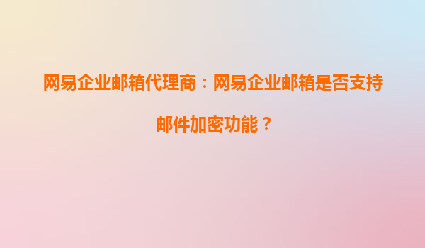 2025-10-05網(wǎng)易企業(yè)郵箱代理商:網(wǎng)易企業(yè)郵箱是否支持郵件加密功能? 一、網(wǎng)易企業(yè)郵箱的郵件加密功能 網(wǎng)易企業(yè)郵箱作為國(guó)內(nèi)領(lǐng)先的企業(yè)級(jí)郵箱服務(wù)提供商,始終將用戶數(shù)據(jù)安全放在首位。郵件加密功能是其核心安全特性...