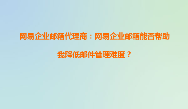 2025-10-05網(wǎng)易企業(yè)郵箱代理商:網(wǎng)易企業(yè)郵箱能否幫助我降低郵件管理難度? 在當(dāng)今快節(jié)奏的商業(yè)環(huán)境中,高效的郵件管理是企業(yè)運(yùn)營(yíng)的關(guān)鍵環(huán)節(jié)之一。作為國(guó)內(nèi)領(lǐng)先的企業(yè)郵箱服務(wù)提供商,網(wǎng)易企業(yè)郵箱憑借其強(qiáng)大的功能和穩(wěn)定...
