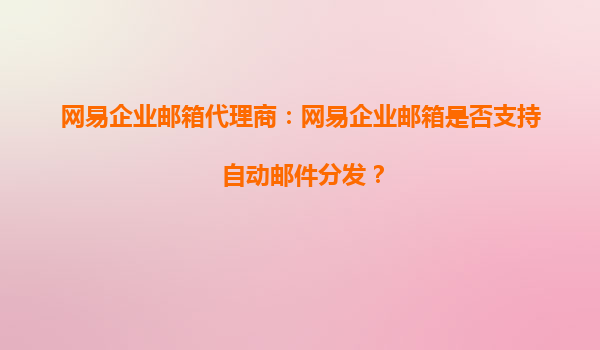 2025-10-05網(wǎng)易企業(yè)郵箱代理商:網(wǎng)易企業(yè)郵箱是否支持自動(dòng)郵件分發(fā)? 在當(dāng)今快節(jié)奏的商業(yè)環(huán)境中,企業(yè)郵箱不僅是溝通的工具,更是提升工作效率的重要平臺(tái)。作為國(guó)內(nèi)領(lǐng)先的企業(yè)郵箱服務(wù)提供商,網(wǎng)易企業(yè)郵箱憑借其強(qiáng)大的功...