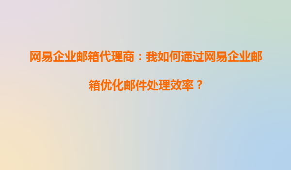 2025-10-05網(wǎng)易企業(yè)郵箱代理商:如何通過(guò)網(wǎng)易企業(yè)郵箱優(yōu)化郵件處理效率? 在當(dāng)今快節(jié)奏的商業(yè)環(huán)境中,高效的郵件處理能力是企業(yè)運(yùn)營(yíng)的關(guān)鍵。作為網(wǎng)易企業(yè)郵箱的代理商,我們深知郵件系統(tǒng)對(duì)企業(yè)溝通效率的重要性。本文將詳...