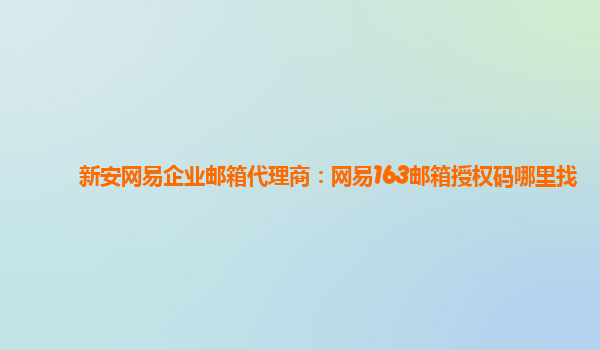 2024-06-12新安網易企業郵箱代理商:網易163郵箱授權碼哪里找(分析與解答) 作為新安網易企業郵箱的代理商,我們致力于提供全面詳盡的信息和解答各類問題,其中一項就是關于網易163郵箱授權碼的獲取。 什么是網...