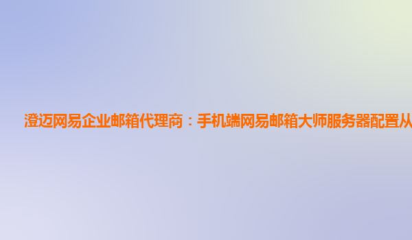 澄邁網易企業郵箱代理商指南:如何配置網易郵箱大師服務器 澄邁網易企業郵箱代理商為你提供了一站式的郵箱服務。在企業發展的過程中,良好的溝通方式對于提高工作效率至關重要。那么如何開啟我們的網易企業郵箱使用...