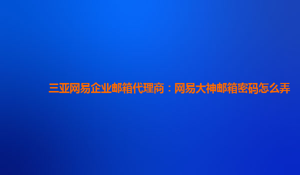2024-06-12三亞網易企業郵箱代理商:網易大神郵箱密碼怎么弄 作為一家全球知名的IT企業,網易始終以提供高效、專業、穩定的互聯網服務為宗旨。其中,網易企業郵箱就是其在商務通信領域推出的重點產品之一。而我們,三亞網易...