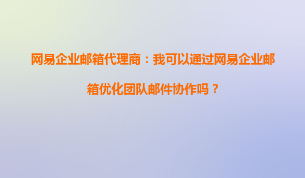 2025-10-03網(wǎng)易企業(yè)郵箱代理商:如何通過網(wǎng)易企業(yè)郵箱優(yōu)化團(tuán)隊郵件協(xié)作? 一、團(tuán)隊郵件協(xié)作的痛點(diǎn)與需求 在現(xiàn)代企業(yè)中,郵件仍然是團(tuán)隊協(xié)作的核心工具之一。然而,傳統(tǒng)郵...