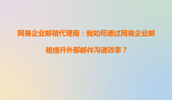 4008-020-360 網(wǎng)易企業(yè)郵箱代理商:我如何通過網(wǎng)易企業(yè)郵箱提升外部郵件溝通效率? 在當(dāng)今快節(jié)奏的商業(yè)環(huán)境中,高效的郵件溝通是企業(yè)成功的關(guān)鍵因素之一。作為網(wǎng)易企業(yè)郵箱的代理商,我深刻體會到網(wǎng)易企業(yè)郵箱在提...