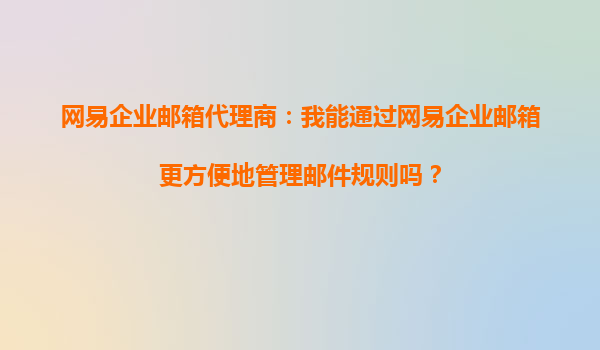 2025-10-04網(wǎng)易企業(yè)郵箱代理商:我能通過網(wǎng)易企業(yè)郵箱更方便地管理郵件規(guī)則嗎? 在當(dāng)今快節(jié)奏的商業(yè)環(huán)境中,高效管理電子郵件是企業(yè)運(yùn)營的關(guān)鍵環(huán)節(jié)之一。作為網(wǎng)易企業(yè)郵箱的代理商,我們經(jīng)常被客戶詢問:“我能通過網(wǎng)易企...