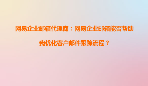 2025-10-04網(wǎng)易企業(yè)郵箱代理商:網(wǎng)易企業(yè)郵箱能否幫助我優(yōu)化客戶郵件跟蹤流程? 一、網(wǎng)易企業(yè)郵箱的核心優(yōu)勢 網(wǎng)易企業(yè)郵箱作為國內(nèi)領(lǐng)先的企業(yè)級郵件服務(wù)提供商,憑借其穩(wěn)定的技術(shù)架構(gòu)、豐富的功能模塊以及專...