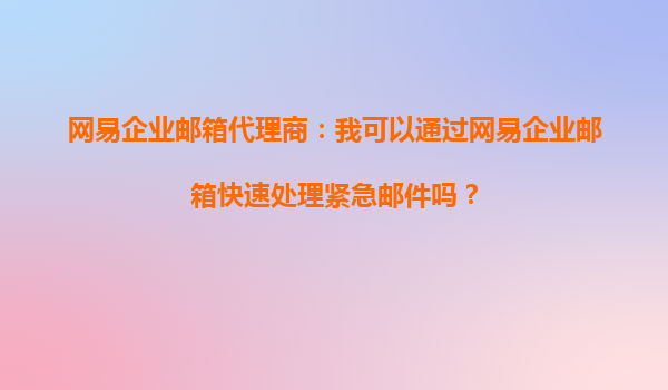 2025-10-04網(wǎng)易企業(yè)郵箱代理商:我可以通過網(wǎng)易企業(yè)郵箱快速處理緊急郵件嗎? 在現(xiàn)代商業(yè)環(huán)境中,高效的郵件溝通是企業(yè)運(yùn)營的關(guān)鍵。無論是日常業(yè)務(wù)往來,還是緊急情況下的快速響應(yīng),企業(yè)郵箱的穩(wěn)定性和功能性都至關(guān)重要。...