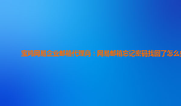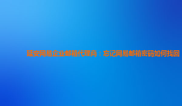 延安網易企業郵箱代理商:忘記網易郵箱密碼如何找回 作為一家專業的延安網易企業郵箱代理商,我們時刻關注客戶的需求與困擾,為其提供各類服務與解決方案。在使用網易企業郵箱的過程中,很多人會因為種種原因忘記郵...