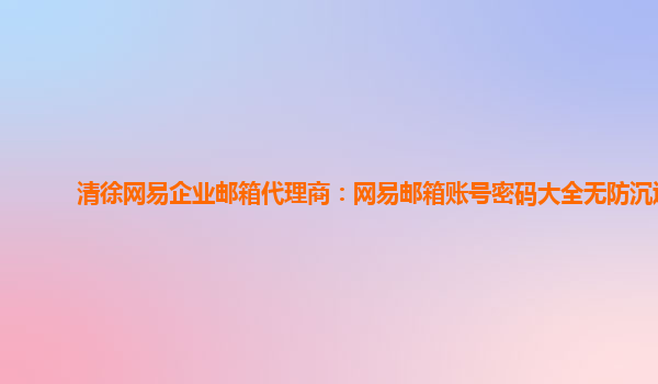 2024-06-11網易郵箱大師wmsvr.error(13):梁山的網易企業郵箱代理商 在當今信息社會,電子郵件已成為我們日常工作中必不可缺的通訊工具。因此選擇一款安全、穩定、高效的企業郵箱至關重要。本文將向大家介紹梁山代理商出售的...