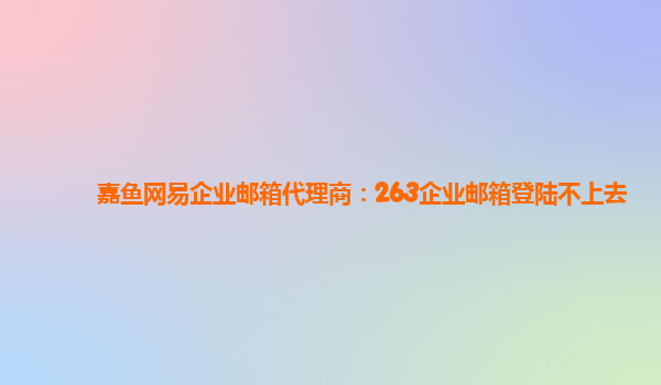 2024-03-15嘉魚網易企業郵箱代理商:263企業郵箱登陸不上去 在使用企業郵箱的過程中,有時候我們會遇到263企業郵箱登陸不上去的問題。這時候我們可以選擇嘉魚網易企業郵箱代理商,來解決這一問題。 一、網易企業郵箱的優勢 ...