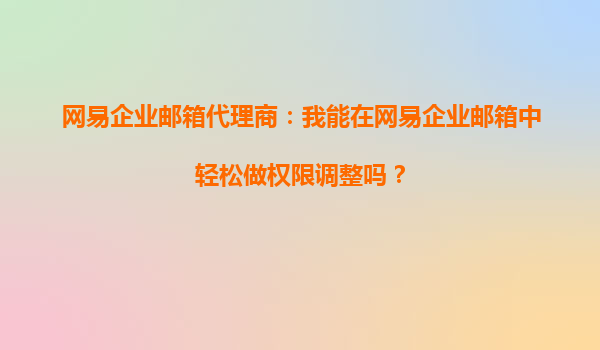 2025-09-30網(wǎng)易企業(yè)郵箱代理商:我能在網(wǎng)易企業(yè)郵箱中輕松做權(quán)限調(diào)整嗎? 在當(dāng)今數(shù)字化辦公環(huán)境中,企業(yè)郵箱不僅是溝通工具,更是信息管理的核心平臺。權(quán)限管理作為企業(yè)郵箱的重要功能,直接影響數(shù)據(jù)安全和團(tuán)隊(duì)協(xié)作效率。...