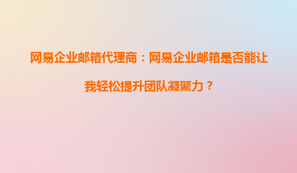 2025-10-01網(wǎng)易企業(yè)郵箱代理商:網(wǎng)易企業(yè)郵箱是否能讓我輕松提升團(tuán)隊(duì)凝聚力? 引言 在當(dāng)今快節(jié)奏的商業(yè)環(huán)境中,團(tuán)隊(duì)凝聚力是企業(yè)成功的關(guān)鍵因素之一。高效的溝通工具能夠...