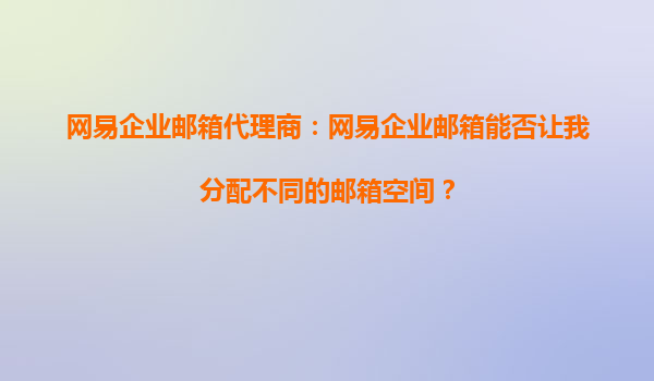 2025-09-28網(wǎng)易企業(yè)郵箱代理商解析:如何靈活分配郵箱空間? 一、網(wǎng)易企業(yè)郵箱的靈活空間分配功能 作為國(guó)內(nèi)領(lǐng)先的企業(yè)通信服務(wù)提供商,網(wǎng)易企業(yè)郵箱不僅提供穩(wěn)定高效的郵...