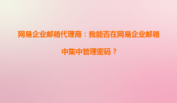 2025-09-28網(wǎng)易企業(yè)郵箱代理商:我能否在網(wǎng)易企業(yè)郵箱中集中管理密碼? 一、網(wǎng)易企業(yè)郵箱的密碼管理功能概述 作為國(guó)內(nèi)領(lǐng)先的企業(yè)郵箱服務(wù)提供商,網(wǎng)易企業(yè)郵箱為企業(yè)用戶(hù)提供了全面的密碼管理解決方案。通過(guò)管理員后...
