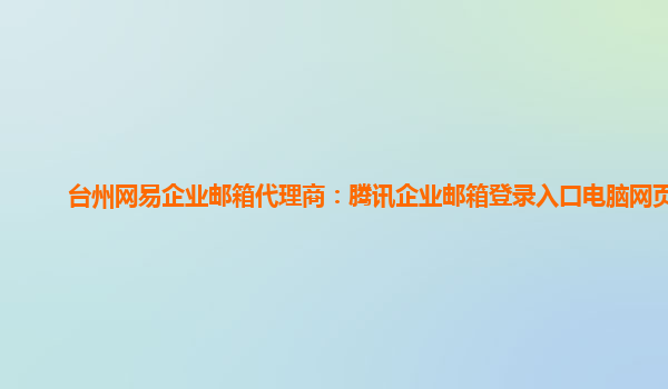 2024-03-14湖州網易企業郵箱代理商:騰訊企業郵箱登錄入口網頁版 企業郵箱是每個企業都必備的工具之一,它不僅能夠提高企業的形象,還能提高工作效率。騰訊企業郵箱作為企業郵箱中的佼佼者,在市場上擁有良好的口碑和用戶群體...