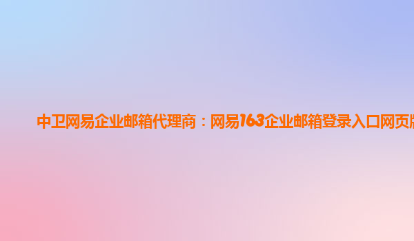 2024-03-14中衛網易企業郵箱代理商:網易163企業郵箱登錄入口網頁版 作為一家企業,如何提高溝通效率、保障信息安全?使用企業郵箱是一個不錯的選擇。而網易163企業郵箱則是一款非常可靠、實用的企業郵箱服務。以下是我使用網...