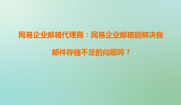 2025-09-25網(wǎng)易企業(yè)郵箱代理商:網(wǎng)易企業(yè)郵箱能解決我郵件存儲(chǔ)不足的問題嗎? 一、企業(yè)郵件存儲(chǔ)不足的痛點(diǎn)分析 在數(shù)字化辦公時(shí)代,電子郵件作為企業(yè)溝通的重要工具,承載著大量業(yè)務(wù)往來、合同文件和歷史數(shù)據(jù)...