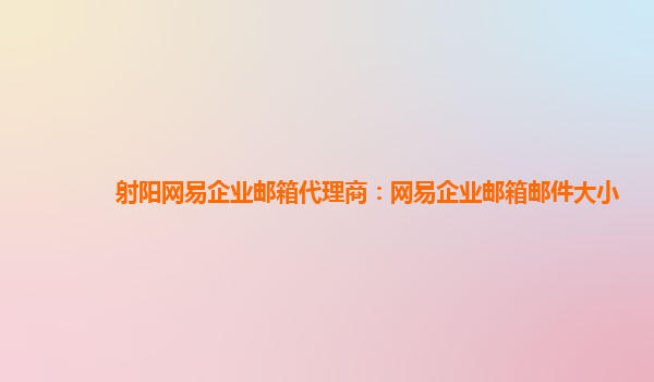 2024-03-14射陽網易企業郵箱代理商:網易企業郵箱郵件大小 網易企業郵箱是一款適用于企業用戶的電子郵件服務,目前已經廣泛應用于各行各業,成為了企業郵件管理的不二選擇之一。而網易企業郵箱代理商則作為企業用戶與網易企業...
