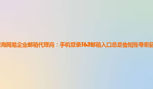 2024-03-14瓊海網易企業郵箱代理商:手機登錄163郵箱入口總是告知賬號密碼錯誤怎么辦 最近有很多用戶反映手機登錄163郵箱時總是提示賬號密碼錯誤,讓人很是困擾。如果您也遇到了這個問題,可以嘗試以下幾種方法來解決: 1....