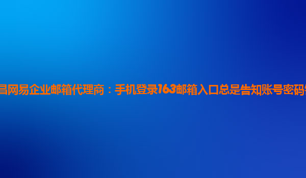 2024-03-14文昌網易企業郵箱代理商:手機登錄163郵箱入口總是告知賬號密碼錯誤怎么回事 當您在手機上嘗試登錄163企業郵箱時,有時候會遇到賬號密碼錯誤的提示,這可能是由于多種因素引起的。接下來我們將結合網易企業郵箱的優...