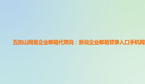 2024-03-14五指山網易企業郵箱代理商:新浪企業郵箱登錄入口手機網頁版 五指山網易企業郵箱代理商 五指山是網易企業郵箱的代理商之一,為用戶提供專業的企業郵箱服務。作為代理商,五指山擁有豐富的經驗...