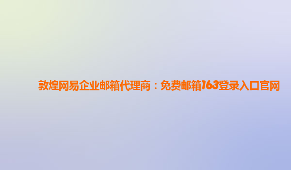 2024-03-14敦煌網易企業郵箱代理商:免費郵箱163登錄入口官網 作為國內知名的企業郵箱服務提供商,網易企業郵箱在市場上擁有著極高的知名度和口碑。而敦煌作為網易企業郵箱的代理商,更是為客戶提供了更加完善的解決方案和優...