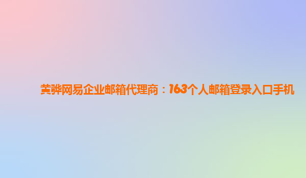 2024-03-03河間網易企業郵箱代理商:手機如何注冊郵箱163免費 在現代社會,電子郵件已經成為人們工作和生活中不可或缺的重要工具。而網易企業郵箱作為國內領先的企業郵箱服務商,提供了高效穩定的企業郵箱解決方案,受到了...