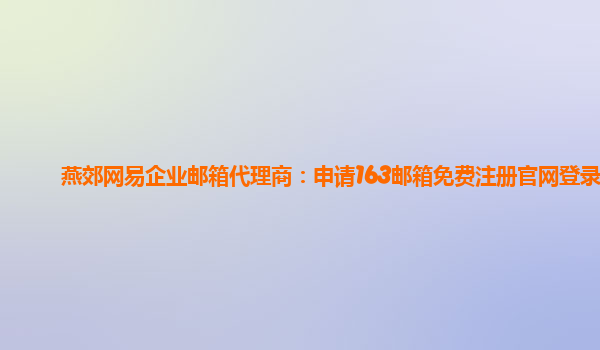 2024-03-03定州網易企業郵箱代理商:申請郵箱163免費個人注冊 隨著互聯網的快速發展,電子郵件已經成為人們日常生活和工作的重要工具之一。作為國內領先的互聯網企業之一,網易推出了企業郵箱服務,為企業和個人提供...