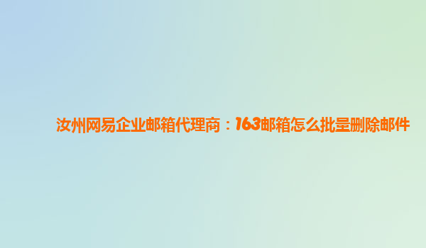 2024-03-03汝州網易企業郵箱代理商:163郵箱怎么批量刪除郵件 網易企業郵箱的優勢 網易企業郵箱是一款專為企業用戶提供的高效、安全的電子郵件服務。其優勢包括: 穩定可靠:網易作為國內知名互聯網公司,服務器穩定可靠,...