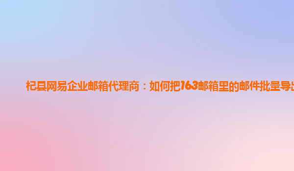 2024-03-03杞縣網易企業郵箱代理商:如何批量導出163郵箱郵件 作為杞縣網易企業郵箱代理商,我們了解到很多用戶在使用163郵箱時需要將郵件進行批量導出的需求。在本文中,我們將介紹如何通過簡單的操作將163郵箱里的郵件...