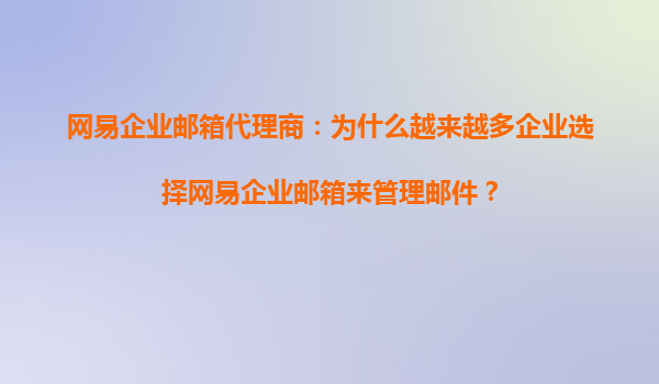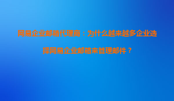 2025-09-18網(wǎng)易企業(yè)郵箱代理商:為什么越來越多企業(yè)選擇網(wǎng)易企業(yè)郵箱來管理郵件? 一、網(wǎng)易企業(yè)郵箱的市場背景與需求增長 隨著數(shù)字化轉(zhuǎn)型的加速,電子郵件作為企業(yè)內(nèi)外溝通的核心工具,其安全性和穩(wěn)定性愈發(fā)受...