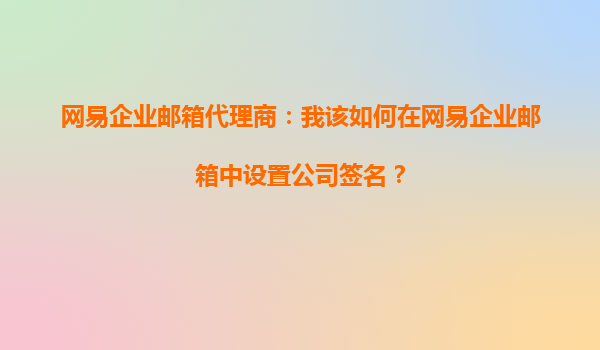 2025-09-19網(wǎng)易企業(yè)郵箱代理商:我該如何在網(wǎng)易企業(yè)郵箱中設(shè)置公司簽名? 一、為何選擇網(wǎng)易企業(yè)郵箱? 作為國內(nèi)領(lǐng)先的企業(yè)郵箱服務(wù)提供商,網(wǎng)易企業(yè)郵箱憑借其穩(wěn)定、安全、高效的特性,贏得了眾多企業(yè)的信賴...