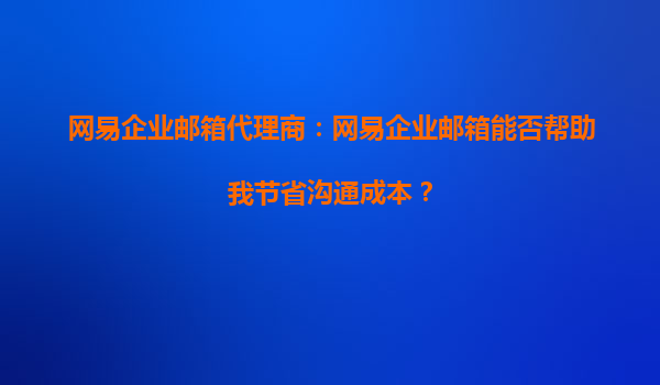 2025-09-19網(wǎng)易企業(yè)郵箱代理商:網(wǎng)易企業(yè)郵箱能否幫助我節(jié)省溝通成本? 一、企業(yè)溝通成本的現(xiàn)狀與挑戰(zhàn) 在當(dāng)今的商業(yè)環(huán)境中,高效溝通是企業(yè)運(yùn)營的核心需求之一。然而,許多企業(yè)在日常運(yùn)營中面臨著日益增長的溝通成本...