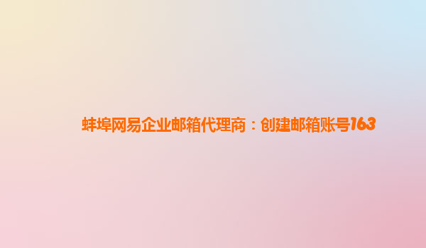 蚌埠網易企業郵箱代理商:創建郵箱賬號163 作為蚌埠地區的網易企業郵箱代理商,我們為您提供最專業、便捷的企業郵箱服務。在現今信息化高速發展的時代,擁有一個穩定、安全、高效的企業郵箱已經成為企業不可或缺的...