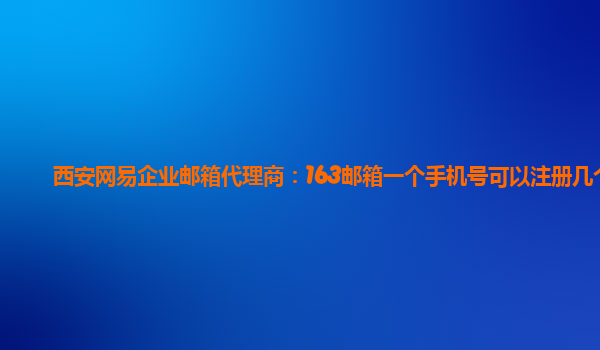 2024-03-01西安網易企業郵箱代理商:163郵箱一個手機號可以注冊幾個 作為西安地區的網易企業郵箱代理商,我們經常接到關于一個手機號能注冊幾個163郵箱賬號的咨詢。今天我們就來為大家解答這個問題,并結合網易...