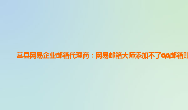 2024-03-01莒縣網易企業郵箱代理商:網易郵箱大師添加不了qq郵箱賬號 最近有用戶反饋在使用網易企業郵箱時,遇到了一個問題,就是在網易郵箱大師中無法添加QQ郵箱賬號。這讓用戶感到困惑和不知所措。作為莒縣網易企業郵箱的代...