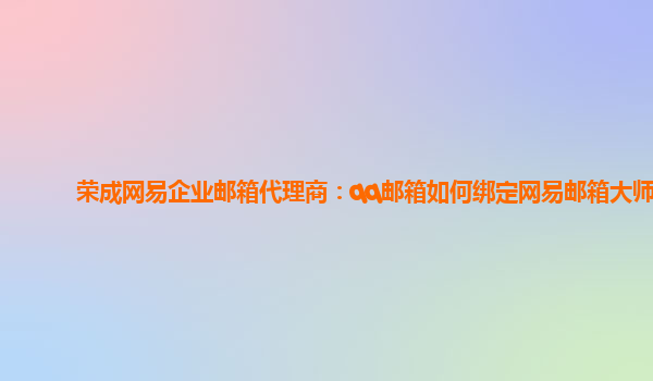 2024-03-01榮成網易企業郵箱代理商:qq郵箱如何綁定網易郵箱大師 作為一家專業的榮成網易企業郵箱代理商,我們深知企業在日常辦公中對郵箱的重要性。為了提供更好的服務和體驗,我們推薦使用網易郵箱大師來管理企業郵箱。...