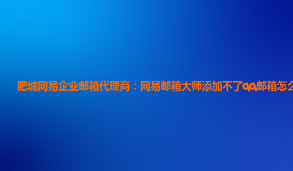 2024-03-01肥城網易企業郵箱代理商:網易郵箱大師添加不了qq郵箱怎么回事 作為肥城網易企業郵箱的代理商,我們經常接到用戶反饋說網易郵箱大師無法添加QQ郵箱的問題。那么這到底是什么原因呢? 首先,我們需要了解一下網易企...