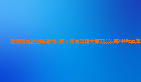 2024-03-01招遠網易企業郵箱代理商:網易郵箱大師可以發郵件給qq郵箱嗎 網易企業郵箱是一款專為企業量身定制的高效、穩定、安全的企業郵箱服務。作為招遠網易企業郵箱代理商,我們經常被客戶詢問一個問題:網易郵箱大師可以發...