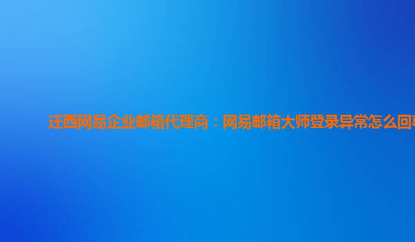 2024-02-29遷安市網易企業郵箱代理商:網易郵箱服務器錯誤怎么辦 作為網易企業郵箱的代理商,我們常常接到用戶反饋說遇到了一些網易郵箱服務器錯誤問題。這時候,我們需要根據錯誤提示信息進行分析和解決。 網易企業郵箱的優...