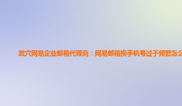 2024-02-29武穴網易企業郵箱代理商:網易郵箱換手機號過于頻繁怎么辦 作為一名武穴網易企業郵箱的代理商,我們經常遇到一些客戶反應,就是當他們想要更改郵箱綁定的手機號碼時,卻發現該操作過于頻繁而無法完成。那么,這種情...