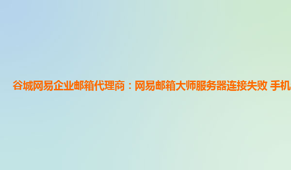 谷城網易企業郵箱代理商: 問題:網易郵箱大師服務器連接失敗手機怎么辦 作為一家專業的網易企業郵箱代理商,我們深知網絡服務的重要性和緊急性。針對網易郵箱大師服務器連接失敗的問題,我們給您提供以下解決建議...